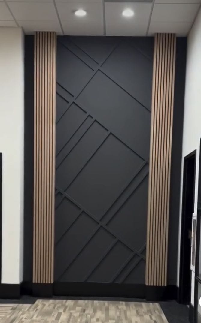 Vera Wall Moulding combines natural wood slats with crisp black linear accents for a contemporary architectural aesthetic. The horizontal wood elements create warmth and texture, while strategically placed black lines provide definition and modern contrast. This layered approach delivers visual sophistication suitable for feature walls, paneling systems, or accent applications. The wood construction ensures authentic character and durability, while the black detailing adds graphic interest without overwhelming the space. Ideal for transitional and modern interiors, Vera offers a refined balance between natural materials and geometric precision—a discerning choice for curated interior design.